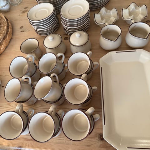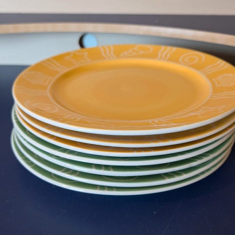 Selger pene middagstallerkener i rød farge. 11 stykk for 350kr