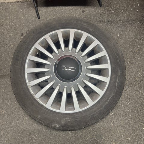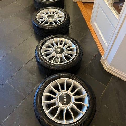 Pent brukte (8mm) 4 stk Originale FIAT 500 aluminiums hjul og sommerdekk