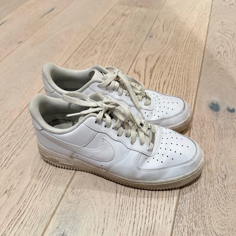 Selger et par Nike Air Force 1 i størrelse 44. Skoene er i blå farge og har vært godt brukt, men de er fortsatt i god stand. Perfekt for deg som er ute etter et par stilige og komfortable sneakers til en rimelig pris. Skoene har noen tegn til bruk, men ingen større skader. Ta kontakt hvis du er interessert eller har spørsmål. Kan sendes mot dekning av fraktkostnader.