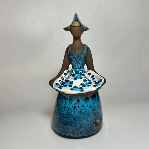 #figur #pynt #design #interiør #sverige #keramikk #80-tall #kunsthåndverk #Jie #EditRisberg #blå #blomsterpike #blomst #vase #Blaafarveværket