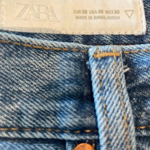 Minimal slitasje, bortsett fra helt nederst ved søm.