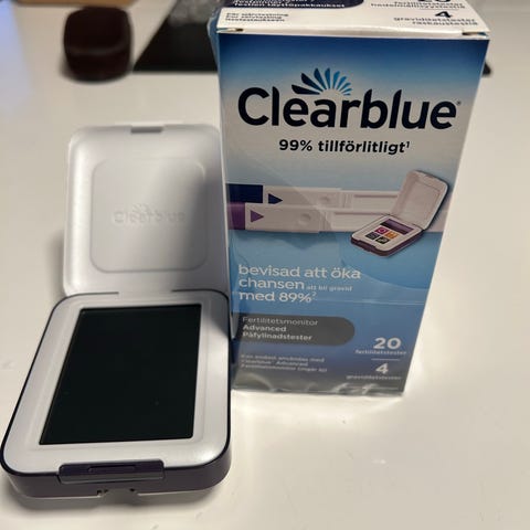 2 nye uåpnet esker Clear blue eggløsningstest og en eske med 7 ubrukte testpinner selges samlet for 600 kr.