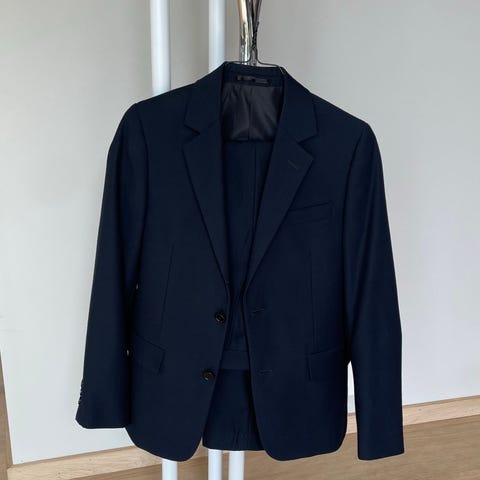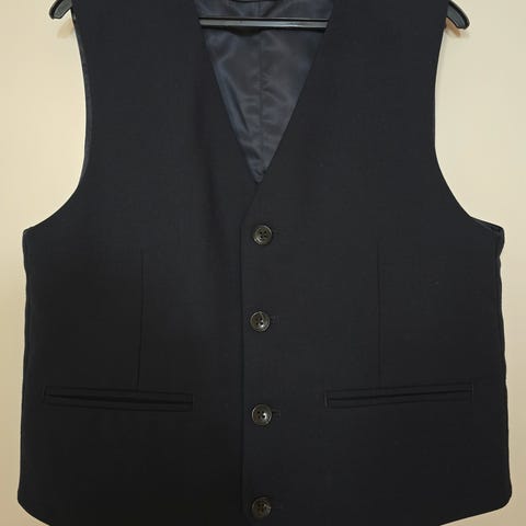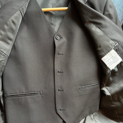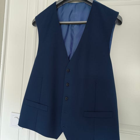 Nydelig marineblå dress med vest selges ubetydelig brukt. Fargen på dressjakken er helt lik vesten, ser det ble et annerledes lys på bildet av jakken.
