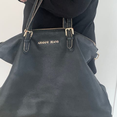 Meget pen Armani skinn veske i grå med grå/blå reim som er avtagbar. Brukt bare 1 gang.