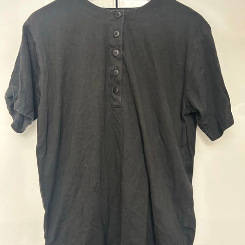 Vintage, lys blå t-skjorte med en liten blomst brodert på brystet. I fin stand, selges fordi jeg ikke bruker den. Strl L, men vil passe alt fra S-L etter ønsket passform (jeg bruker vanligvis small)
