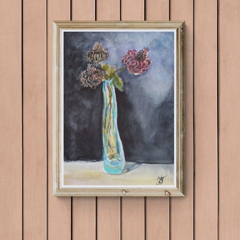 🌸 Akvarellen er en fin kunstnerisk gave for deg som elsker å skape drømmende og avslappet stemning og tidløs estetikk i interiør.