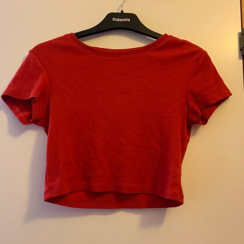 Selger pent brukt topp i rød metallisk farge, størrelse 170- passer en XS/S. Fra Kappahl.