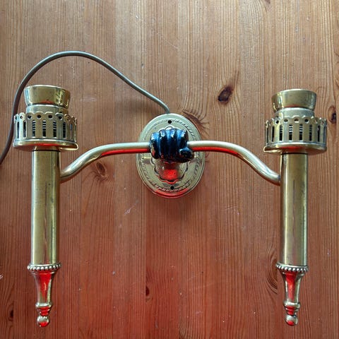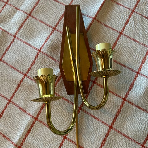 Vintage lampe av M.Kjærnet i teak og messing selges. No. 178, ypperlig norsk design fra 60-tallet. Kan sendes postnord kr 69.
