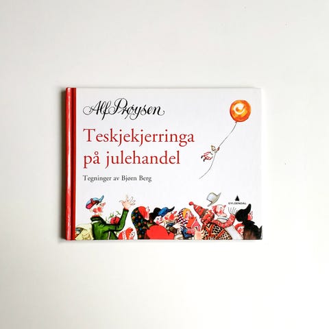 En av Alf Prøysens historier om kjerringa som ble så lita som ei teskje. Tusjtegninger på noen steder (se bilder).