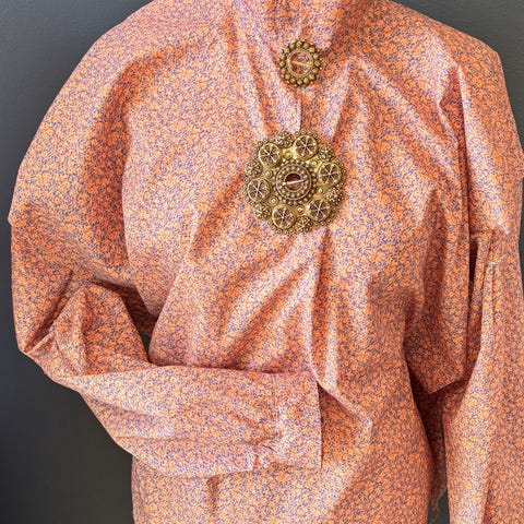Lekker bunadskjorte i tynn ull. Med folder øverst på erme og rynking nederst ved mansjetten. Søljene du ser på skjorten er mulig å kjøpe.