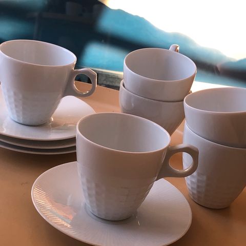 Pris i annonse er for ett sett med kopp, asjett og skål.