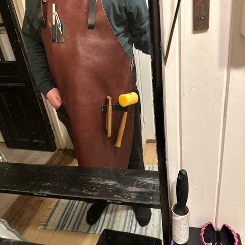 Praktisk kraftig forkle i buffalo skinn - ypperlig til spikking & figurskjæring ol.