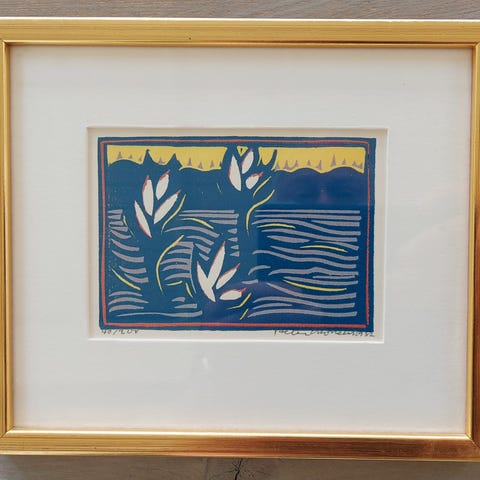 "Call me Beautiful" (2009). Signert maleri i blandet teknikk med mye tekstur. Bildet er tilført applikasjon. Mål: 50x50cm. Kr.900