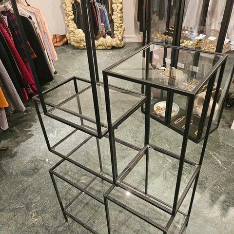 Hylle i glass og metall