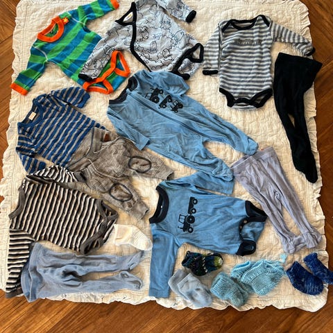 Klespakke med 15 fine ullplagg, bodyer, bukser, pysj og jakke