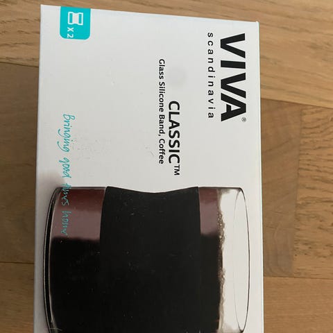 To pene tekopper som i tillegg til å ha et behagelig og varmemotstandig silikongrep, og er utstyrt med en smart spor som forhindrer snøret i teposen fra å falle ned i koppen