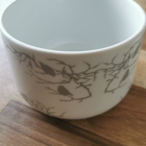 Kjempefin rundt skål fra Wik & Walsøe. Alv, lysrosa/beige mønster.