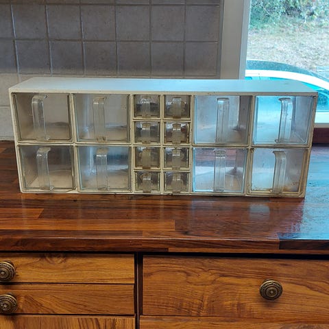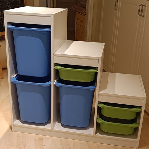 Skap3: blå med 1stort rom+6 små rom.300kr