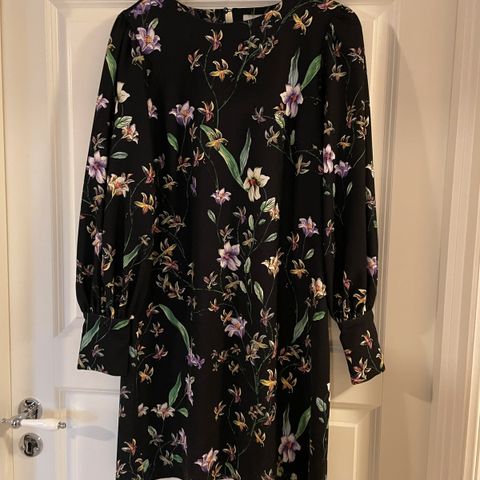 Selger denne fine kjolen med blomster og knyting rundt håndledd i str 34 fra hm