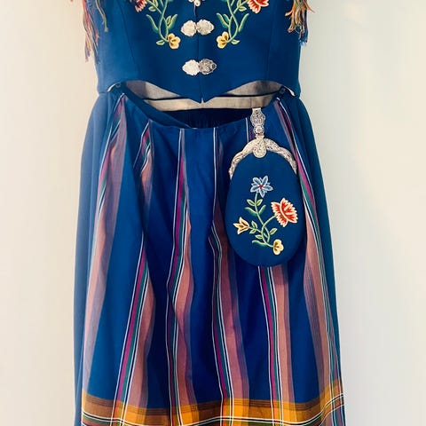Nå har du mulighet til å kjøpe en fin Nordlandsbunad som er lite brukt. Bunaden fremstår som ny. Sjal, forkle og sjalfeste er inkludert i pris.