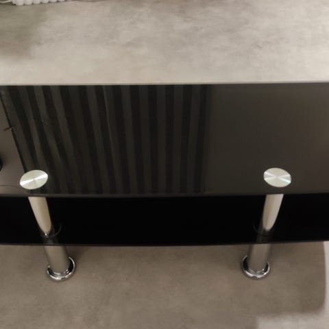 Unikt glassbord med sorte metall-ben