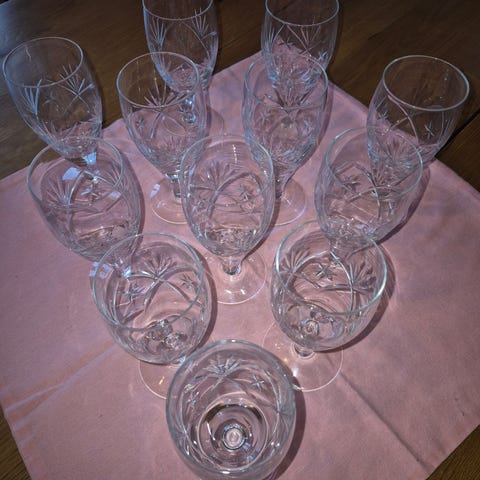 Finn hetvin 7cl / 11,5cm. Pent brukt, 11 stk skadefri og 1stk med en liten skår på kanten.
