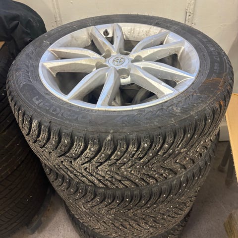 Originalt Toyota alu 16" felger med 235-60 R16 piggfritt dekk i bra stand.