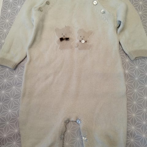 Herlig dress med teddyfor i ull ytterst og innvendig stoff i bomull. Svært lite brukt da minsten vokste fort utav den. Vil si den er litt liten i str og kan brukes fra ca 56/62 ettersom hender og føtter kan brettes inn som votter/tøfler. Kan brukes hele året i feks bæresele. Har litt vindstoppereffekt. Baby holdes god og varm. Perfekt nå fremover.