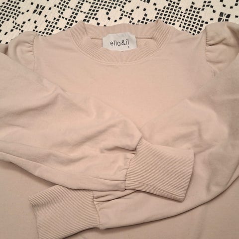 Pent brukt genser fra Ella&il, modell Missy sweather str. S. 95 % bomull og 5 % elastin, derfor veldig god å ha på. Pent brukt, ingen bruksmerker.