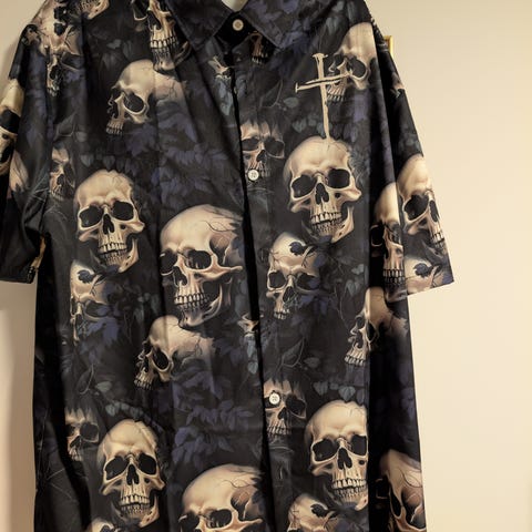 Fin og pent brukt skjorte med hodeskaller i mønster.