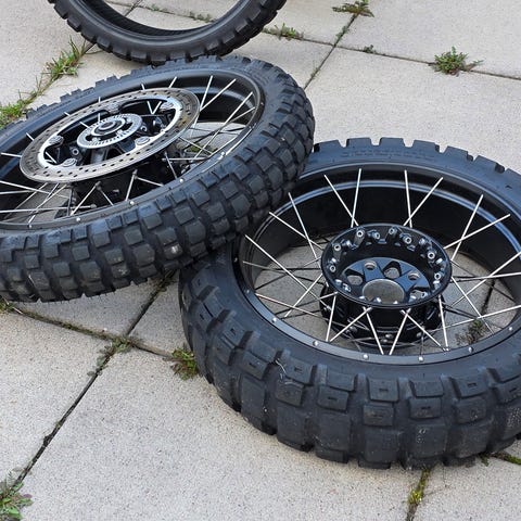 Ubrukte felger med Bridgestone Adventure dekk.