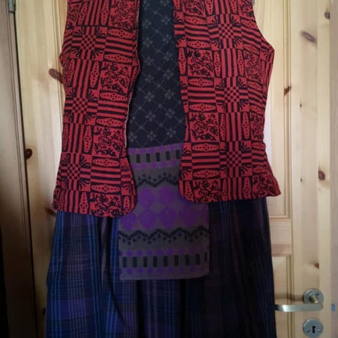 Pent brukt skjørt,underskjørt, forkle,skjorte,vest, mansjettknapper og sølje. Sko str 37 kan følge med