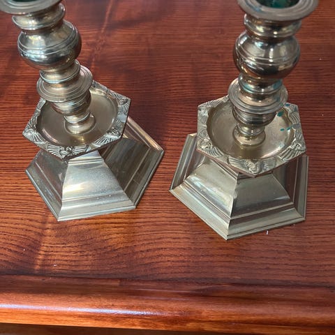 Store lysestaker i messing i klassisk stil