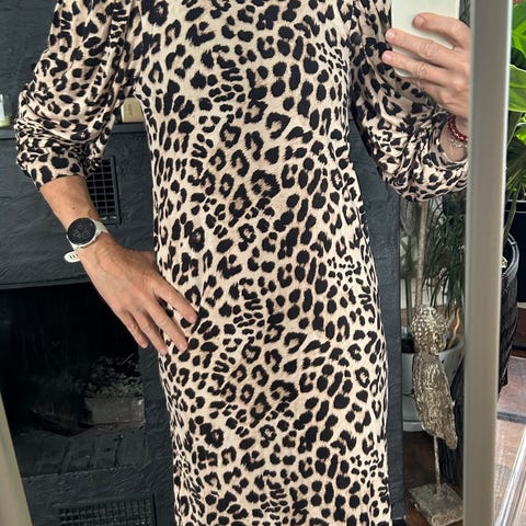 🐆Leopard mønstret kjole fra B young og eksklusiv strå cap med leopard detalje🐆