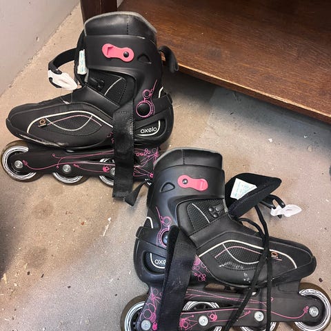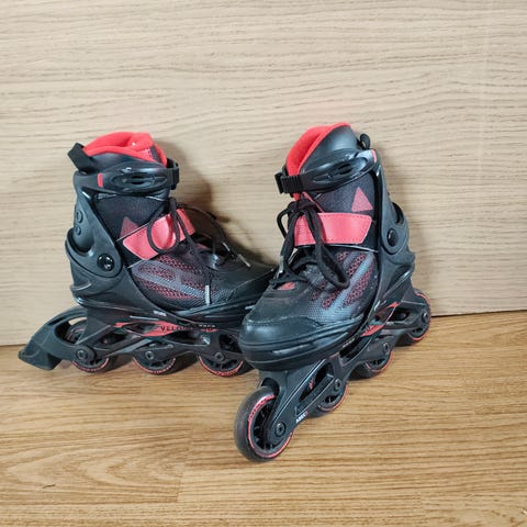 Pent brukt inline skøyter til salgs. Merke California pro jr. Det er brems på den høyre skøyten. Enkle å stramme så de sitter fint på foten