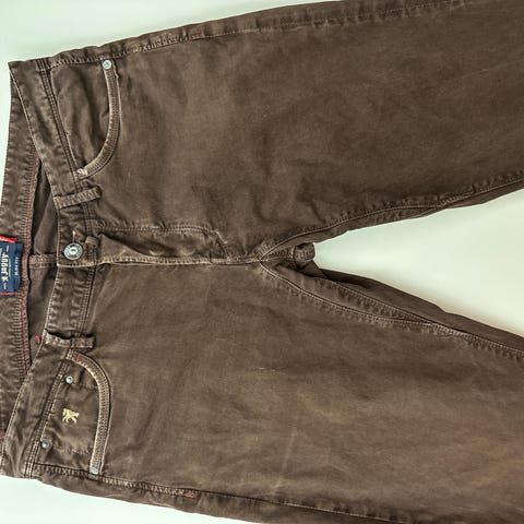 Tøff #bomullsbukse med kremfarget stikninger - mengden tøffe detaljer - merke #jaggy #pent brukt - kneppet gylf - str 38/32 #jeans
