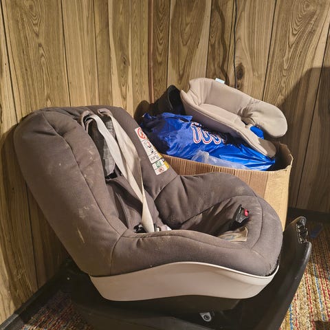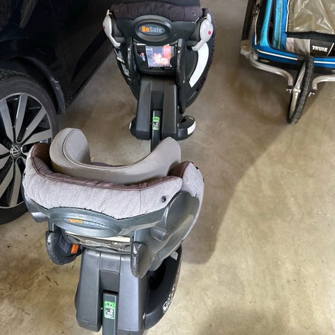 Setet kan festes både forovervendt og bakovervendt. Veldig forsiktig brukt, jeg er nøye med bil og sete-sikkerhet og det har ikke vært lov å leke i. Eneste anmerkning er at det har begynt å flasse litt bak over hodet, men ellers ingenting. Har støvsugd setet, men trekket kan trenge en vask om man er veldig nøye. Etter fire turer i møkkete barnehage er det sikkert likt igjen😅