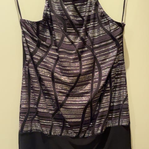 Svart topp med gull farget spenne i fronten.