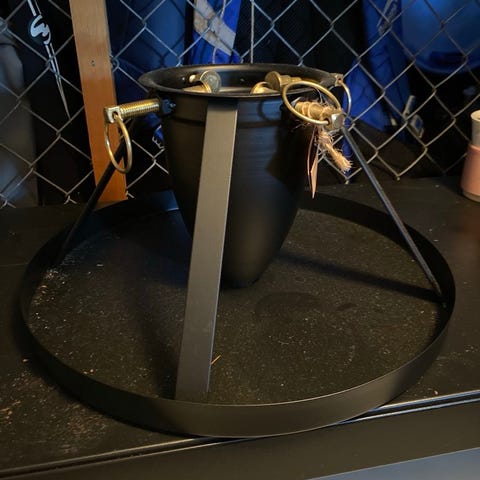 Vi har fått inn for salg en potte eller stearinlysholder, litt usikker. Flerfarget med julenisse som pynt.