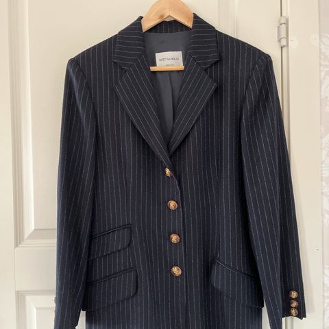 Elegant kort jakke med trekvartlange flaggemusermer i italiansk høykvalitets stoff, brukt et par ganger.