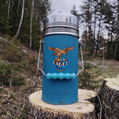 Gammel termos for mat, lapskaus, suppe, pølser? Har ikke brukt den, men tatt vare på den etter mine foreldre. Innvendig glasskolbe. Er skeptisk til å sende....., men kan vel ta sjansen hvis det er av interesse, vil i såfall pakker godt. Tipper den er 60-70 år gammel ev. eldere ....?