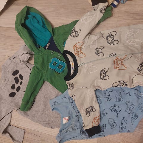 Jeg selger pent brukte babyklær i størrelse 50 (noen få plagg), samt flere i størrelse 56 og noen i størrelse 62. Klærne er i god stand, noen er aldri brukt , bare vasket. Kan selges samlet eller hver for seg. Ta gjerne kontakt for mer informasjon! :)