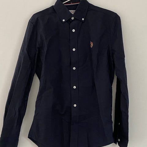 Fin buttondown skjorte i bomull, str small. Mørke blå. Svært pent brukt.