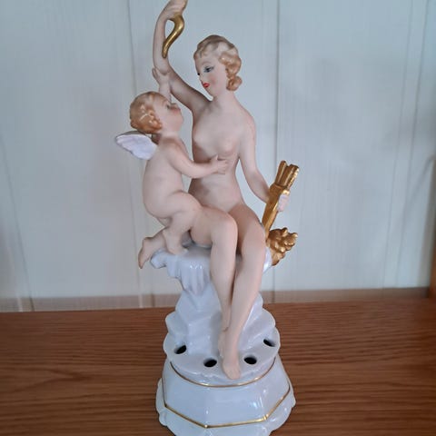Veldi vakkert. Gammel engel, antikk, lysestake
