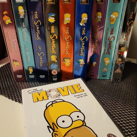 Spesielle samlebokser med sesong 6, 8 og 9 av The Simpsons. Meget pent behandlede både bokser og dvd plater. Inneholder booklet og alt annet som er med originalt.