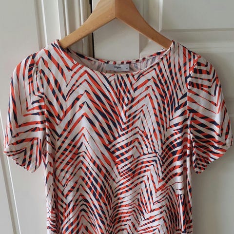 Ubrukt stripete topp med fine detaljer foran, zipp-lås bak, bomull/viscosa. Kjøpt i Tyskland