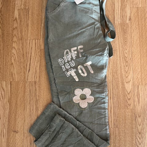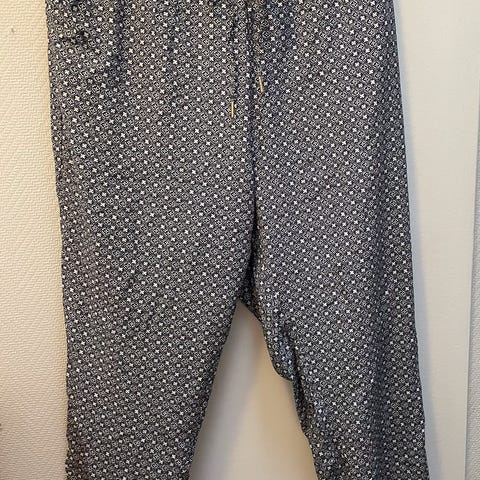 Blåmønstrete sommerbukse med strikk i livet og lommer str M selges kr 100,-