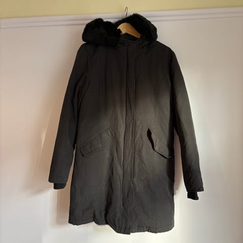 Selger dunkåpe med pels krage. Kragen kan tas av.