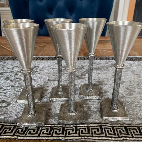 6 nydelige tekopper i forsiret tinn med glass fra Kazakovsky Plant of Art Products, Kashakstan.