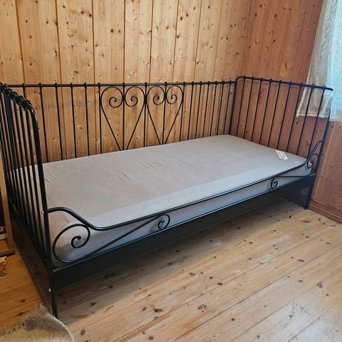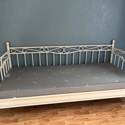 Pent brukt seng i stål som er lite brukt og har vært lagret i mange år